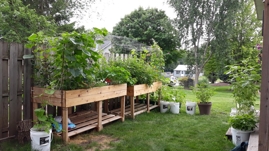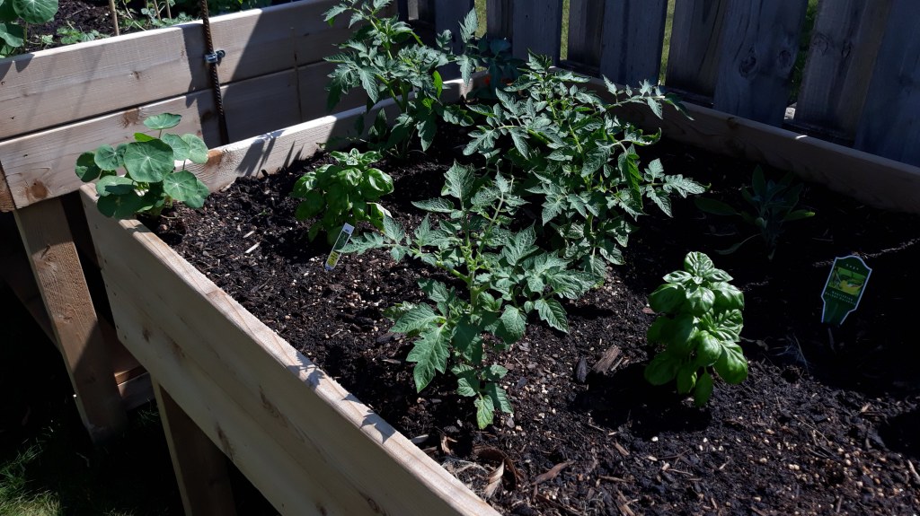 I’ve been giving the beds and pots a good soaking each time I feel the soil is dry. Of course, rain water is always best, so thank goodness for a little of that over the past few weeks! The raised beds hold moisture really well, and I’ve been so pleased with how my garden is growing in them. Soon I will add a top layer of straw to the beds and pots. This is done to help retain moisture and keep weed pressure down. Although, aside from pulling easy weeds the first few weeks, this setup has been amazing for a former farmer who is so done working in the weeds, pulling weeds, watching weeds overtake….