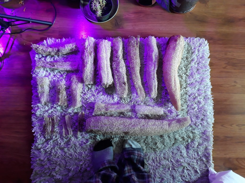 - Cutting the loofah at either end did not benefit the drying process, but rather increased molding.
