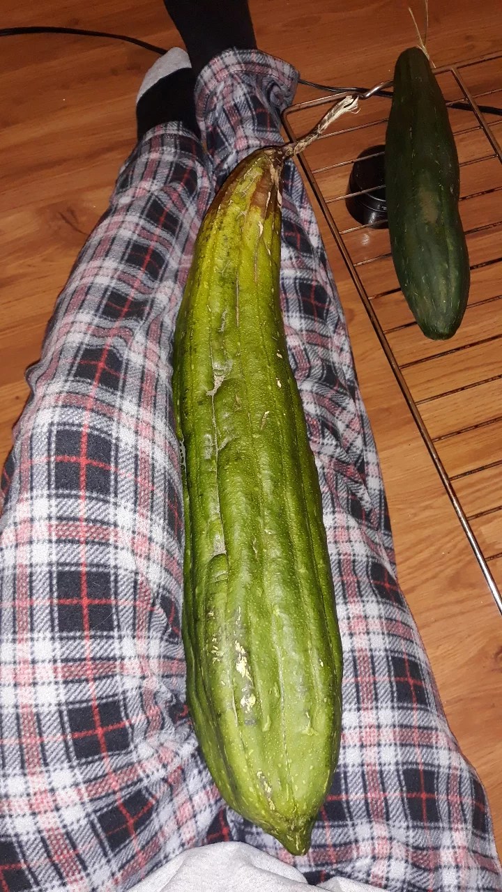 THE FARMER BEAT TIP: don’t be afraid to harvest your loofah at various stages to get a feel for when it’s right for your process. This is what the skin looked like on “The Honker” when I harvested it.