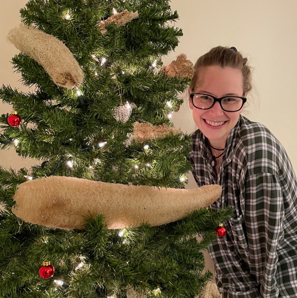 I got really excited and threw the dried loofahs onto my Christmas tree. I laughed and snapped photos, but then realized I thought it actually did look neat, so I went all in and adorned the tree in all sorts of naturally and respectably-foraged natural ornaments (sumac, wild bergamot seed heads, twisty vining twigs, prairie grass heads, and more.)