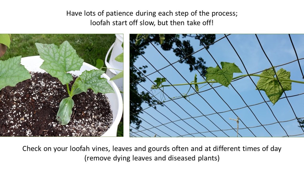 • Up-potting at least five or six more loofah seedlings into 4″ pots